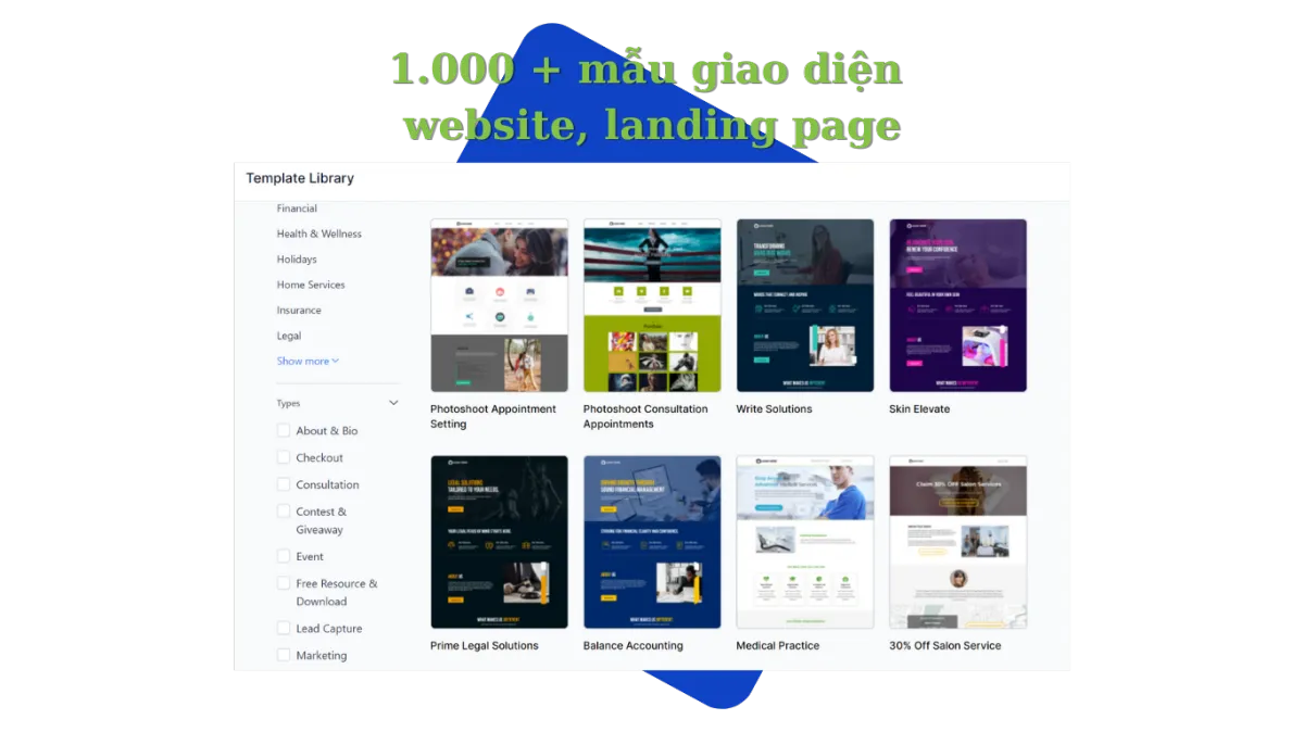 Có hàng ngàn mẫu website, funnel đẹp sẵn sàng cho bạn để chèn nội dung của mình.