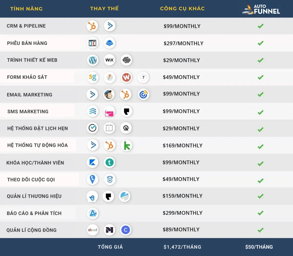Auto Funnel đã giúp tôi tiết kiệm $3000 chi phí mỗi tháng cho quá nhiều phần mềm và đặc biệt tối ưu được hiệu suất quảng cáo. Nền tảng này có tất cả những công cụ hiệu quả bạn cần để triển khai một hệ thống tự động hóa. Nó thật sự hiệu quả và bạn sẽ phải bất ngờ trước kết quả kinh doanh.